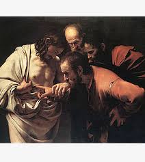 Miguel Angelo, tem um quadro muito interessante. Após a ressurreição, Cristo se apresenta aos apostólos. São Tomé precisa ver para crer. O artista, inspirado na passagem, cria uma composição.